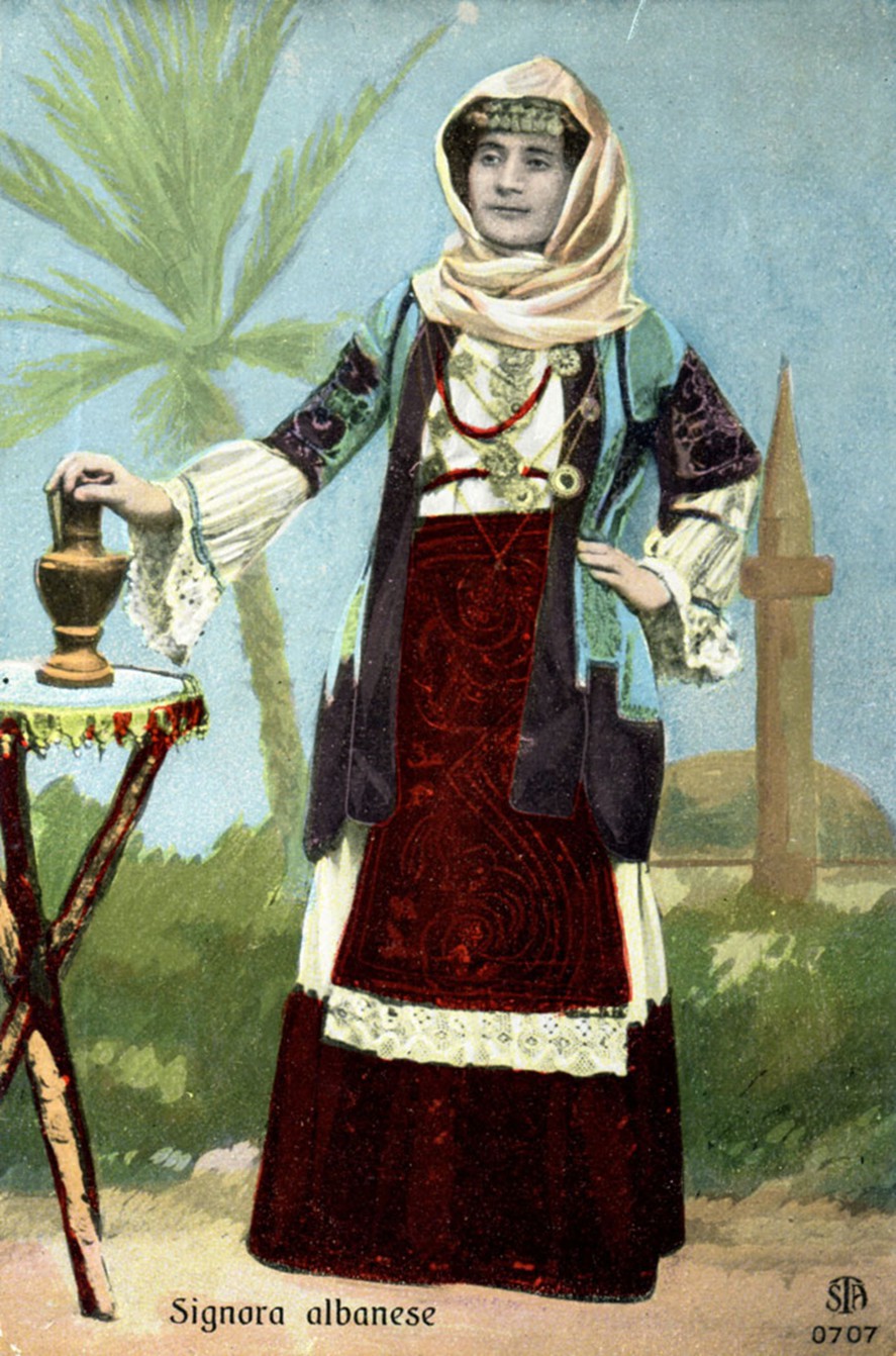 Fotografien albanischer Volkstrachten als Ansichtskarten verwendet und wie