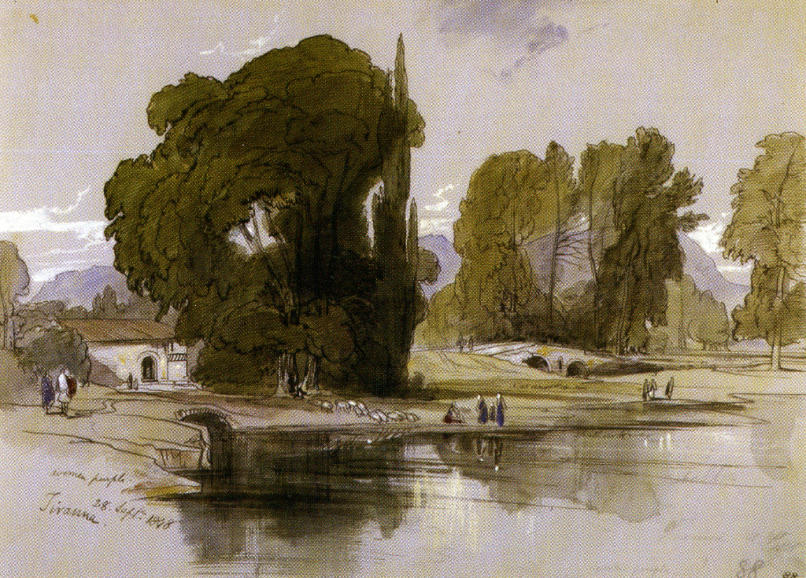 EDL008 - Edward Lear. Tirana, Albania, with a view of the Lana River and the old Tanners’ Bridge