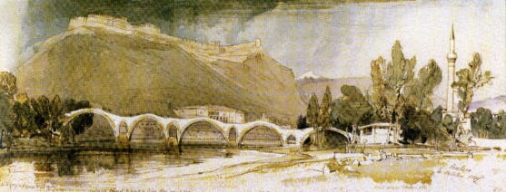 River, with the fortress of Shkodra in the background, 4 October 1848.