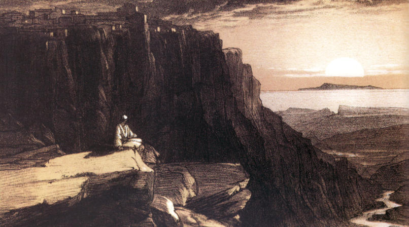 EDL033 - Edward Lear: Sunset on the coast of Himara (Khimára/Cimara) on the southern Albanian